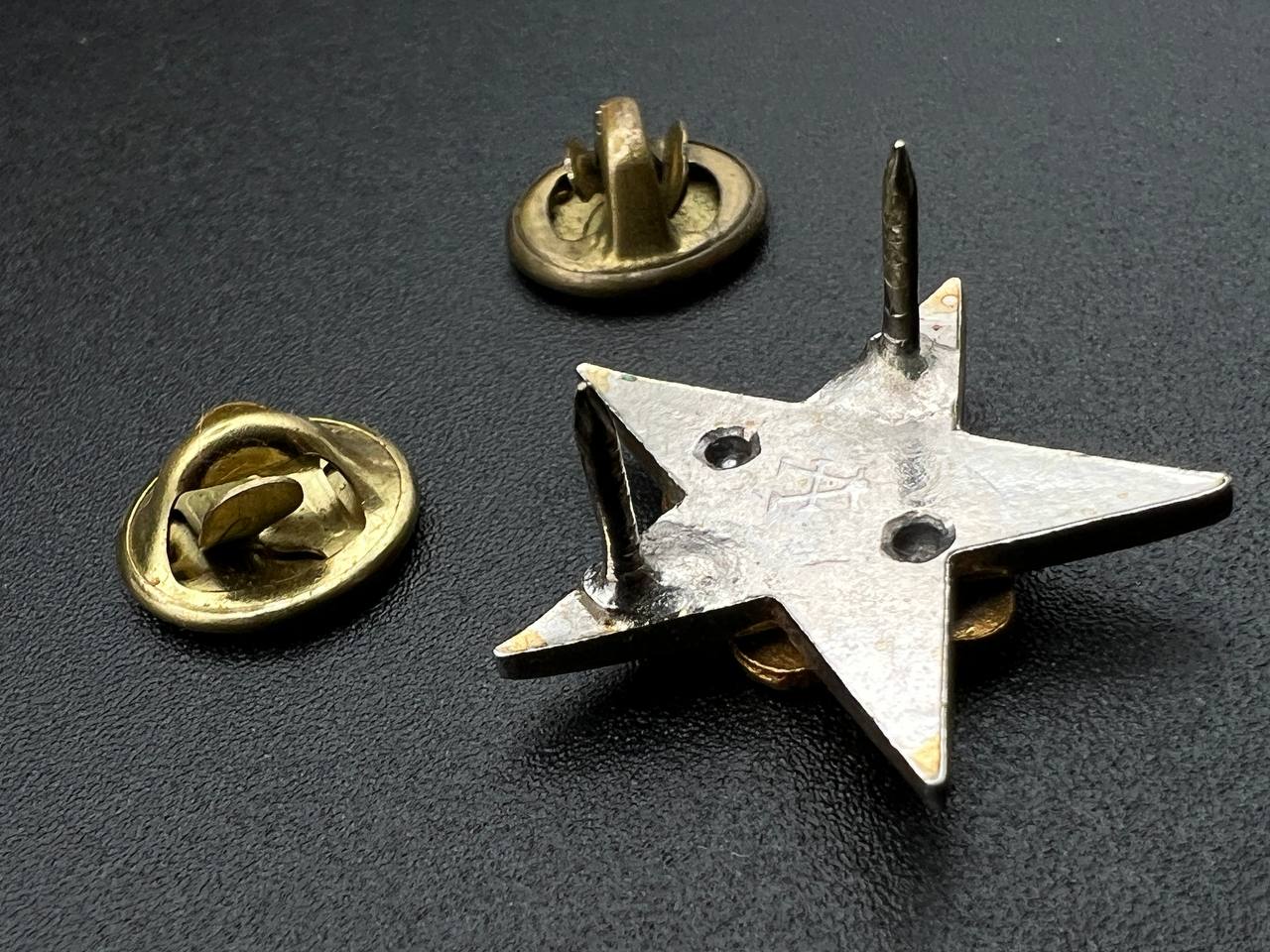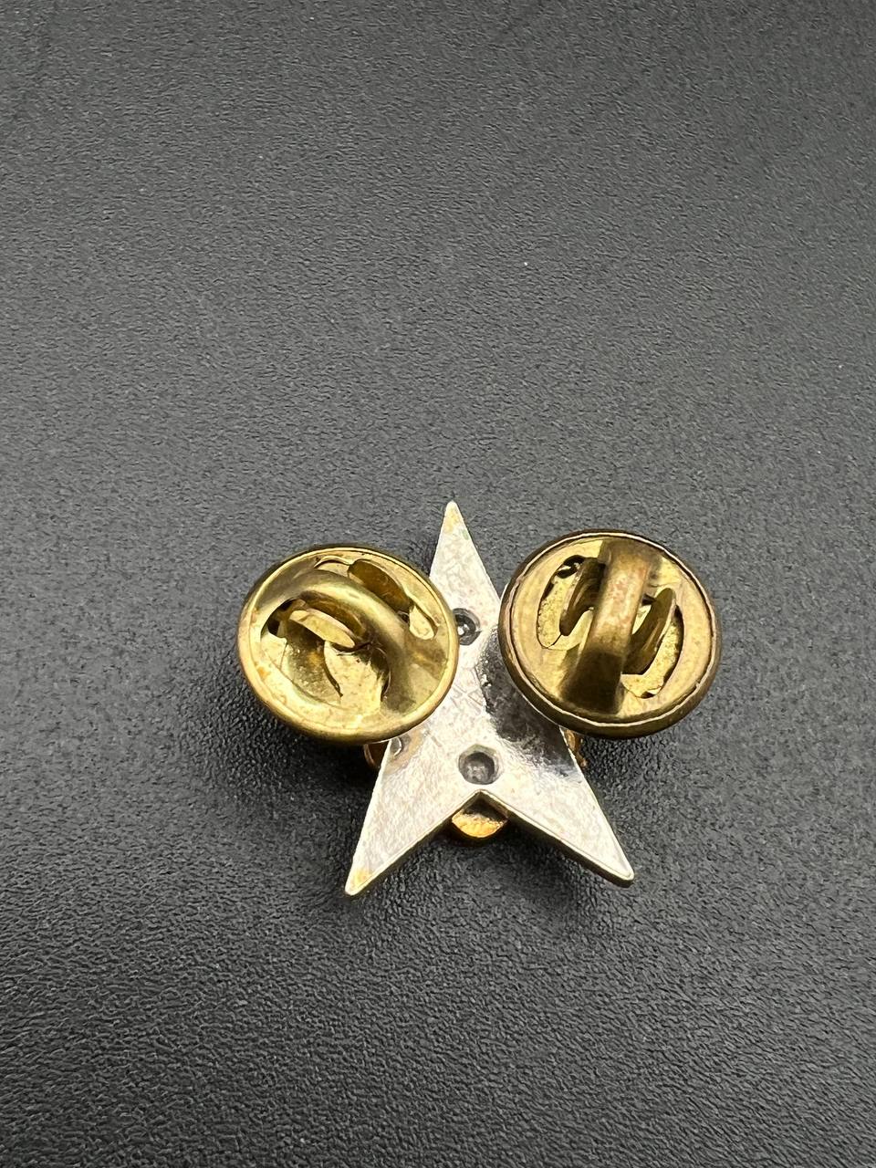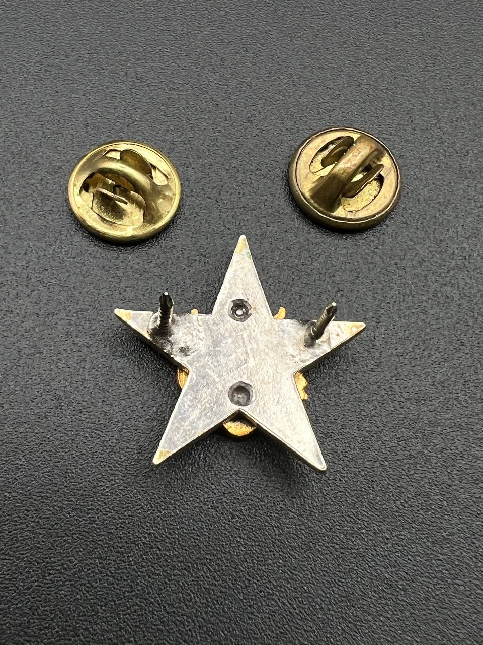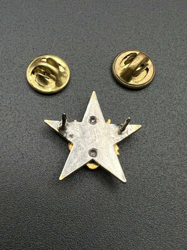Emblem in the form of a silver five-pointed star with a gold-colored Great Seal of the United States — an eagle holding a shield, olive branch, and arrows. Worn on the collar or cap by U.S. Army officers and enlisted personnel during and after World War II (1940s–1950s).
