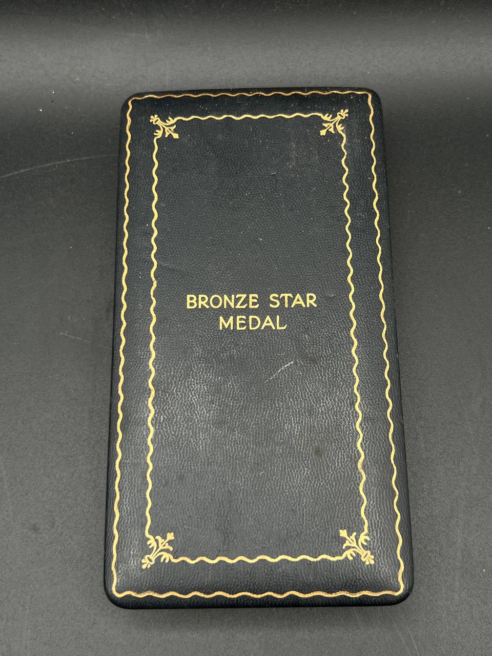 • Original WWII–Korean War era presentation case with gold lettering “BRONZE STAR MEDAL” on the lid.
